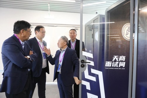 会前,与会校友企业家在校领导的陪同下,参观了新文科实验中心,切身感受母校的峥嵘岁月与办学治校的新成绩。