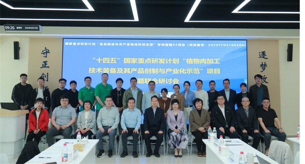 4月19日,“十四五”国家重点研发计划“植物肉加工技术装备及其产品创制与产业化示范”项目课题联合研讨会在新文科实验中心顺利召开。学校党委副书记王立云,科研处处长刘斌,机械工程学院党委书记张莹、副院长陈爱强,生物技术与食品科学学院副院长柴春祥出席会议。会议特邀南京财经大学副校长方勇、江苏省农业科学院农产品加工所所长王道营、天津理工大学电气工程与自动化学院院长杜明星、天津科技大学阎瑞香教授、东北农业大学王中江教授到会指导。